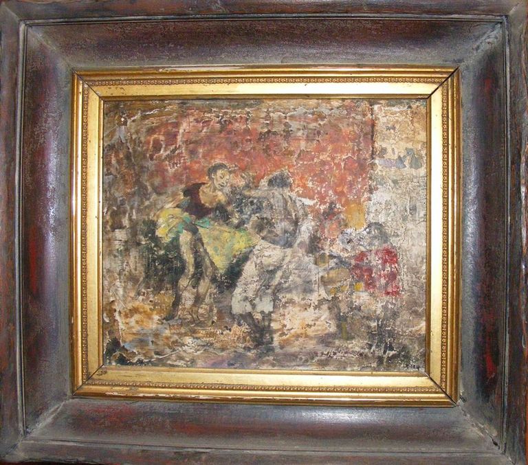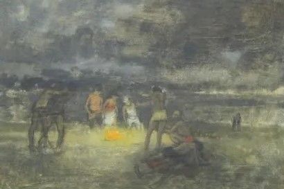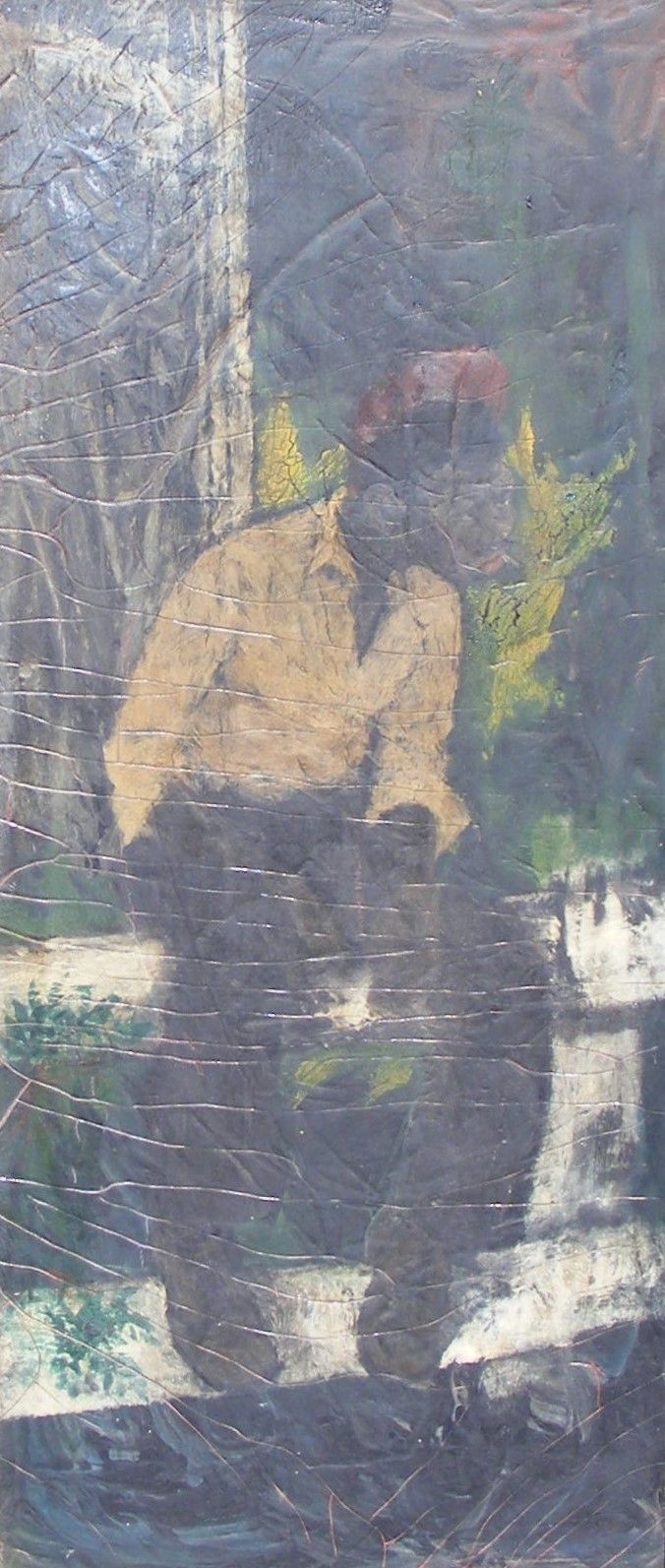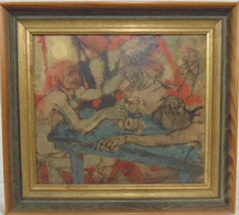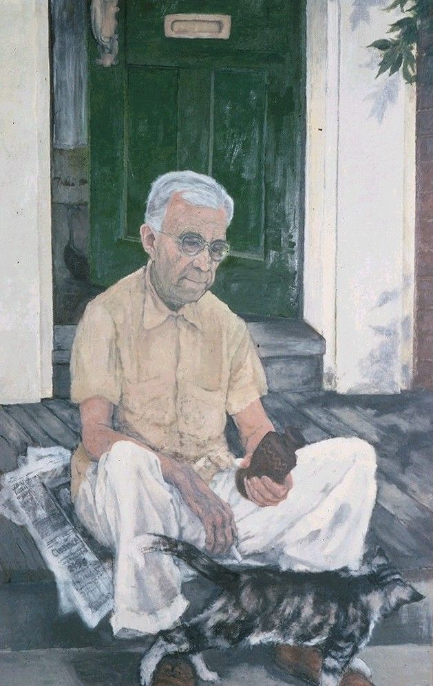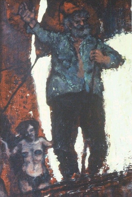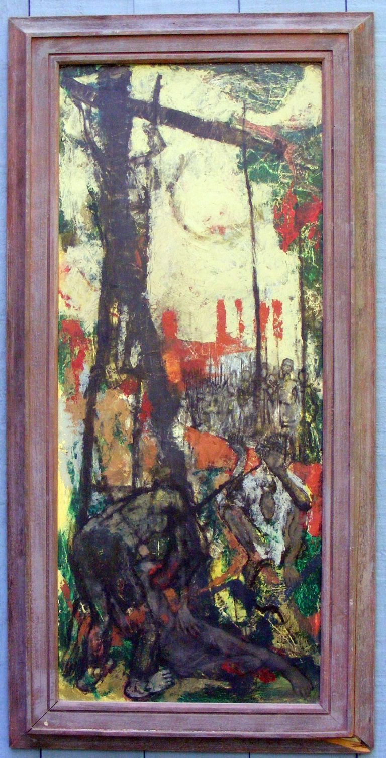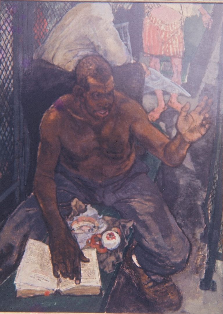 "This was a man that was well over 6 foot tall and weighed well over 200 pounds. And I worked with him at Handy and Harman and Fairfield. He used to sit in what we call the changing room and have his lunch there and he always had the Bible with him. And if you passed by him, he would just hold you up and he'd preach from the Bible. And I, I've just sort of picked up the title of not in bread alone from that. He has really a very, very nice man and unfortunately died at a very early age. This painting was in the collection of Corcoran Museum in Washington D.C."