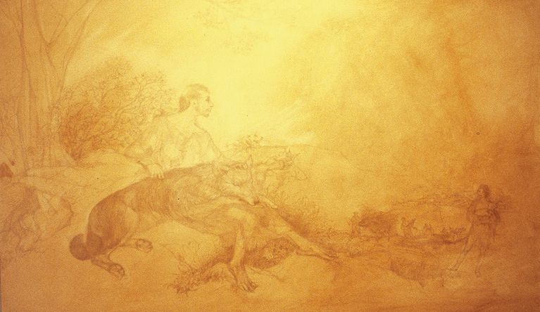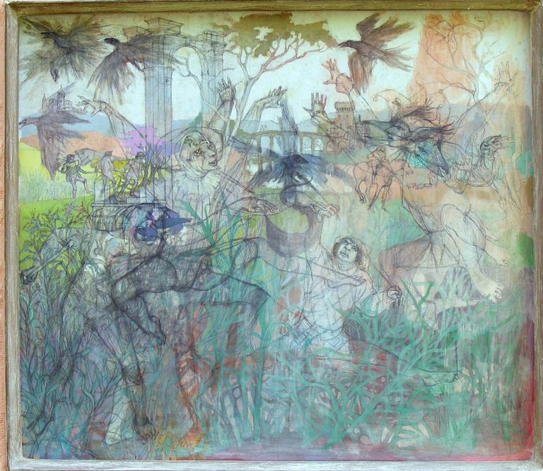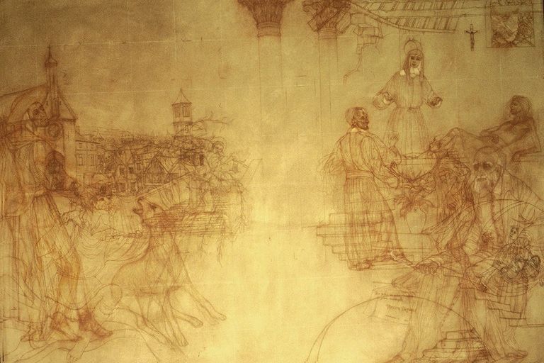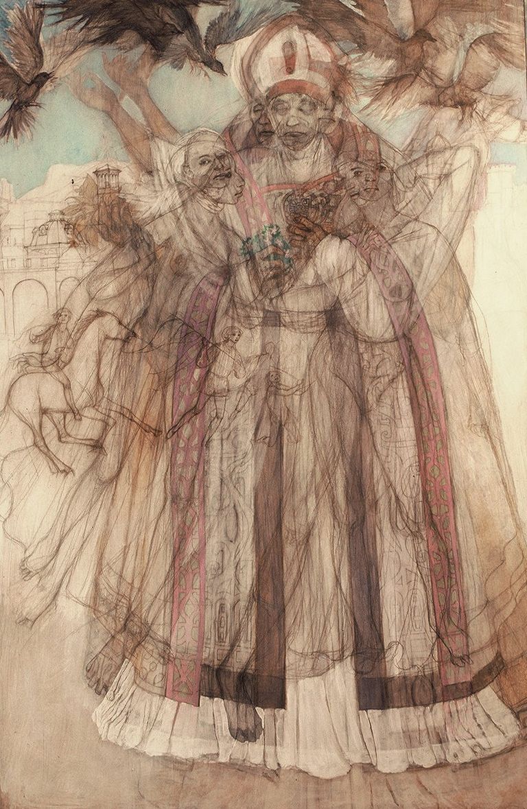 Bernard Riley retired from Handy and Harmen in 1980 then spent much of the rest of his life creating a mural depicting the history of his native Bridgeport and working on a commission from St. Vincents's Hospital. He we unable to complete this last work before his death in 1984