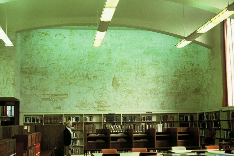 "Well, I was interested more in the character of the city than the people, rather than any heroic kind of mural; one that would show tremendous heavy industry. There was some heavy industry in Bridgeport, but actually the character of the city was more technical. It wasn't Pittsburgh, although there were smelters here and there were iron factories here. The general character of the city was more one of machinists and toolmakers and dye makers and designers. This was the truth, the strength of the city. And I wanted to show the people.