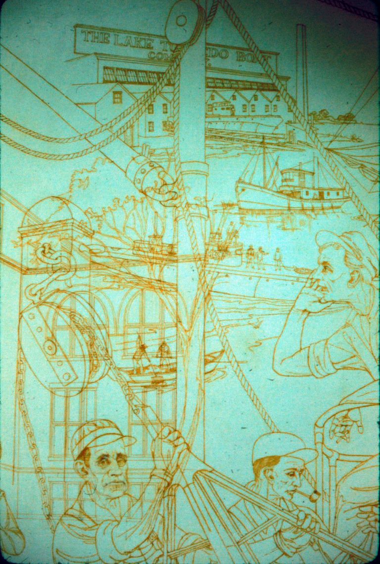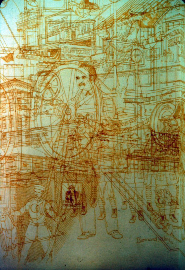 "Well, I was interested more in the character of the city than the people, rather than any heroic kind of mural; one that would show tremendous heavy industry. There was some heavy industry in Bridgeport, but actually the character of the city was more technical. It wasn't Pittsburgh, although there were smelters here and there were iron factories here. The general character of the city was more one of machinists and toolmakers and dye makers and designers. This was the truth, the strength of the city. And I wanted to show the people.